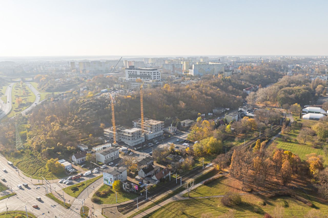 - Dwie nowoczesne wieże spięte wspólnym dziedzińcem prowadzącym na skarpę z kameralnymi strefami relaksu,